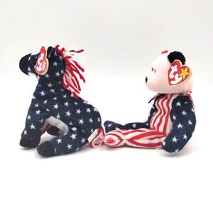 Ty Original Beanie Baby Lot Spangle & Lefty 2000 1999 Plush with Tags Democrat