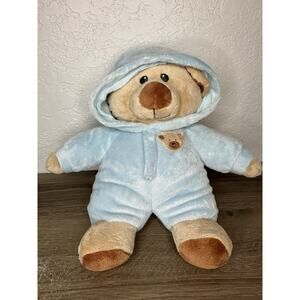 Ty Pluffies Baby Bear Blue Plush in Hooded Pajamas Stuffed Animal 10"