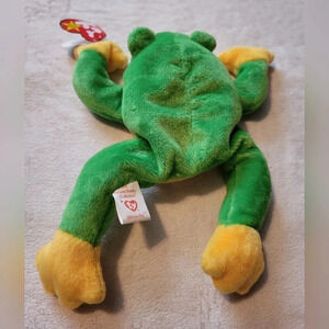 Mint condition Smoochy beanie baby, ribbiting green & yellow frog.