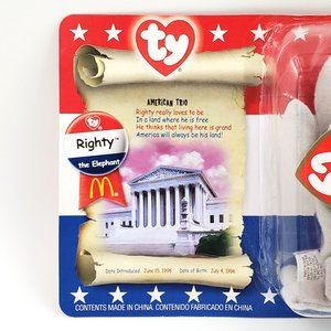 McDonalds “Righty the Elephant” collectible from Ty Teenie Beanie Babies 2000 “American Trio” collection.