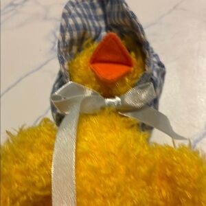 Charming yellow plush toy by Ty. Features soft texture and blue accents. No ear tag, it does have a tush tag.