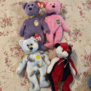 11 TY bears birthday bears ballerina bear red white and blue bear two Easter bears a sunshine bear cashew the bear all in great condition very collectible a few of them are rare