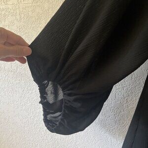 Tyche Black Balloon Sleeve V Neck Womens Blouse Sz S NWT whimseygoth