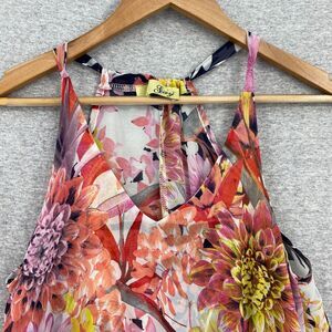 Tyche Blouse Womens Small Floral Pick Sleeveless Silky Top Flowy Sheer Tropical