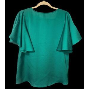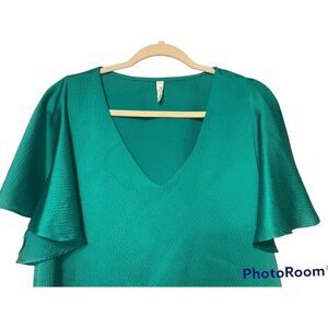 Tyche Flutter Sleeve Kelly Green V-Neck Top Sz. L Holidays, Cocktail