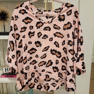 Tyche Size Large Pink Leopard Print Dolman blouse