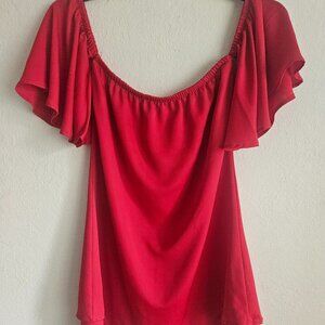 Tyche red Off/On shoulder Holiday Flowy Sleeves lined blouse Made in USA S