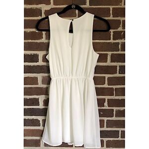 Tyche White Dress Size Small ▪️Flowy Material ▪️Size Small ▪️Open Keyhole Back with Button Detail ▪️33in from Shoulder to Hem