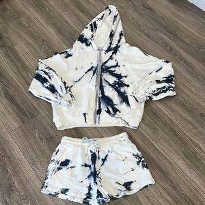 Tye Dye Blue/White Hooded Sweatshirt and Short Matching Set (S/M)