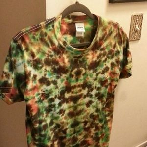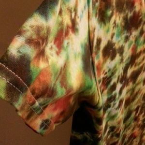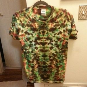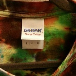 Gildan is top quality tees and this tye-dye piece has a cool psyhcadelic design. The design is present throughout entire tee on the outside and inside. Brand new.