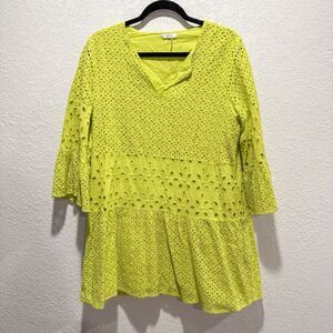 Tyler Böe Isla Eyelet Tunic Dress Women's Large Wild Lime Chartreuse Green Cotto