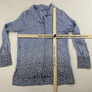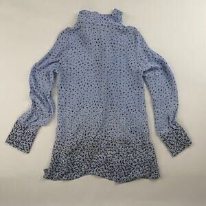 Tyler Boe 100% SILK Blue Polka Dot Button Up Shirt L/S Collared Sz S Split Hem