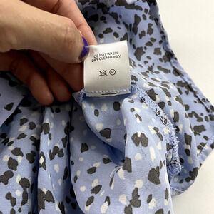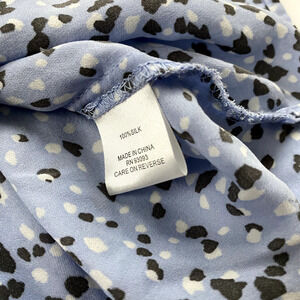 The versatile pattern and season options make this a shirt you can wear year-round, from winter to summer and everything in between. It's a size S and designed for women, making it a great addition to any wardrobe. Upgrade your style with this Tyler Boe silk shirt today. Semi-sheer lightweight fabric.