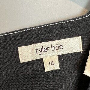 Tyler Boe Black Linen Dress White Stitching Sleeveless A Line with Pockets Sz 14