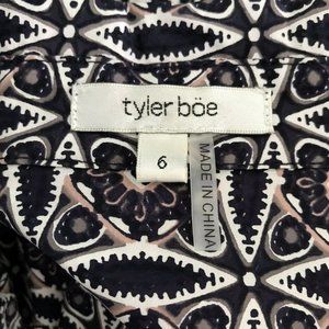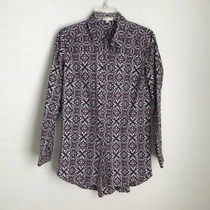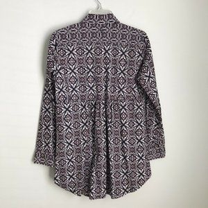Tyler Boe Black Pink Print Long Sleeve Button Down Tunic Shirred Back