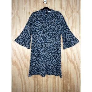 Tyler Boe Blue Black Grey Animal Print Dress Bell Sleeve Flare Size Large A-Line