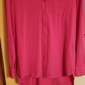 Tyler Boe Bright Pink Buttoned Longsleeve Shirt Asymmetrical Hem Size M