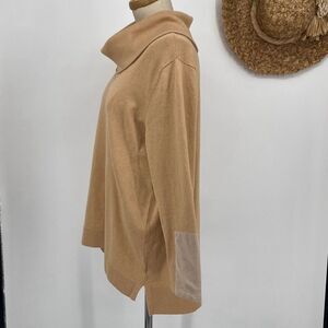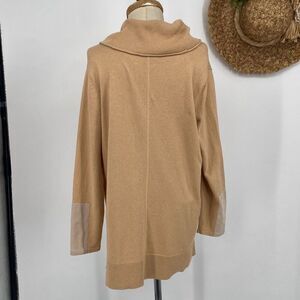Tyler Boe Cashmere-Blend Cowl Neck Tunic Sweater Side Slit Camel Large