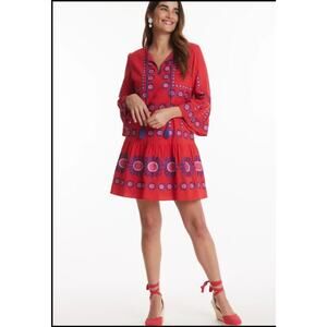 Tyler Boe Flame Holly V Neckline Embroidered Topper with Tassel Ties size large
