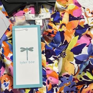 NWT Tyler Boe Julia Woven Mandarin Collar Sleeveless Scallop Ruffle Trim Hidden Placket Button-front Top In Multi Floral
