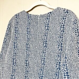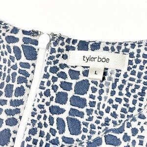 Tyler Boe Long Sleeve Peplum Sheath Dress large blue reptile V neck stretch knit