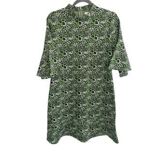 Tyler Boe Mindy Dress Sz M Mock Neck Jacquard Animal Print Flutter Sleeve Green