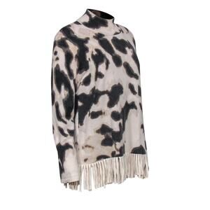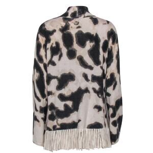 Tyler Boe Mock Neck Fringed Leopard Print Cashmere Blend Sweater sz LG