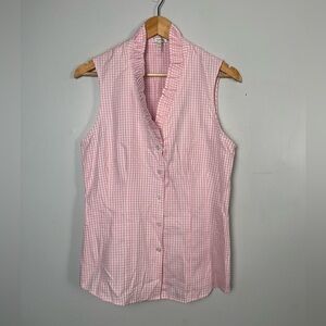 Tyler Boe Pink Gingham Ruffle Collar button down Tank top cotton size 6
