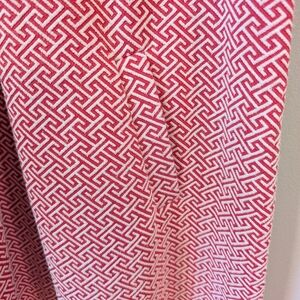 Chic pink and white Tyler boe dress with a striking geometric pattern. Features a stylish high neckline. size medium. measurements in photos. has pockets. good pre-loved condition. shows very small pilling if you look close. see photos.