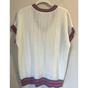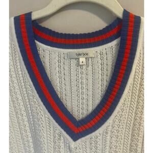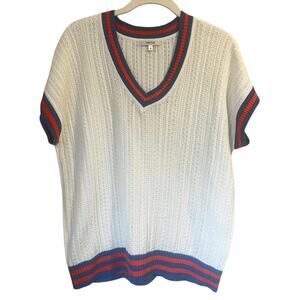 Tyler Boe Pointelle Striped Cricket Tennis Vest Popover Boxy sz S Red White Blue