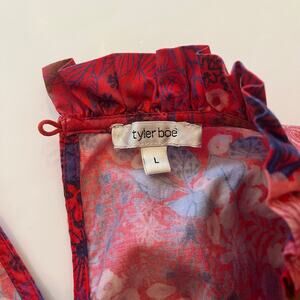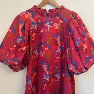 Tyler Boe Sammy Dress Large Red Wild Flowers Puff Sleeve Tiered Cottage Modest