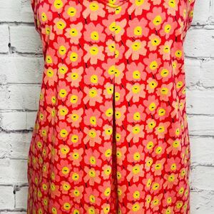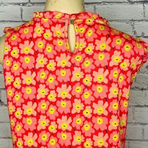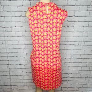 Tyler Boe Womens Red Yellow V-Neck Ruffle Knit Sleeveless Sheath Dress Sz Large
