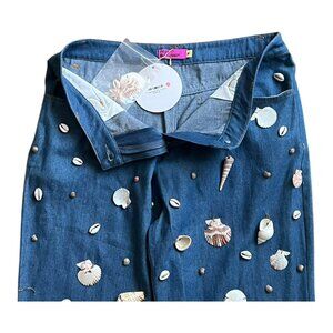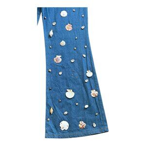 •Details: Wide leg / flare, high-rise fit, real seashell embellishments