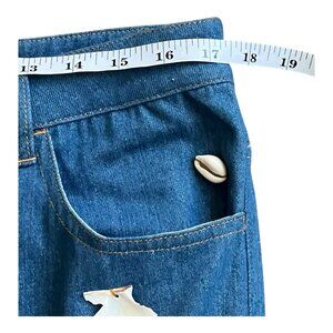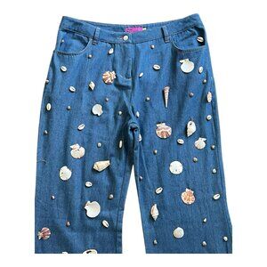 Authentic Tyler McGillivary Thingamabob Pants in size XL — rare collector’s denim inspired by ocean treasures. These mid-wash jeans feature a retro 70s wide-leg flare silhouette and are hand-adorned with real seashells and sand dollars, making each pair unique. Highly collectible and nearly impossible to find in XL.