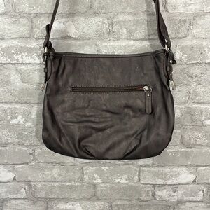 Sleek and versatile grey leather crossbody bag, perfect for everyday use. Features a spacious interior and adjustable strap for comfort.