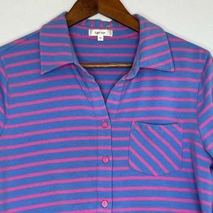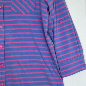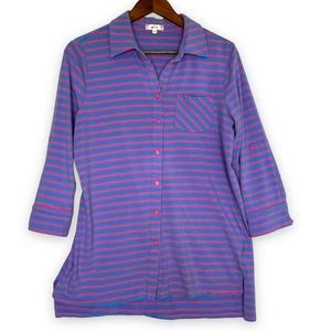 Tyler Boe Blue Pink Striped 3/4 Sleeve Button Front Hi Low Tunic Top Medium