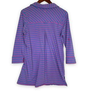 Tyler Boe Blue Pink Striped 3/4 Roll Tab Sleeve Button Front Hi Low Tunic Top Medium