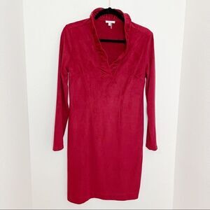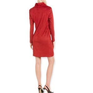 Tyler Boe Pomegranite Suede Ruffle Neck Shift Dress
