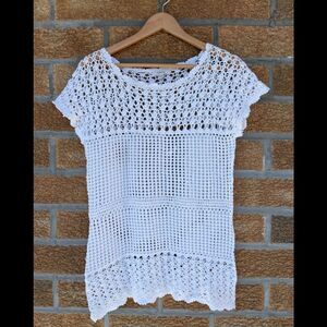 Cotton in good condition Shoulder to shoulder 17” inches Arm pit to arm pit 18” inches Top shoulder down to bottom of hem 26”