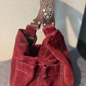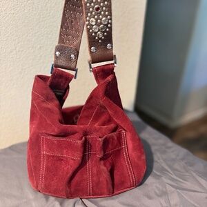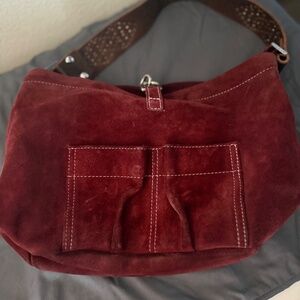 Tylie Malibu Burgundy Maroon Suded Utility Handbag EUC