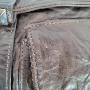 Good pre-owned condition. White spot on right pocket and area of dark on front middle. Please see photos for measurements.