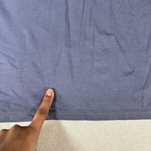 This shirt is in okay condition, theres stains on the sleeve and pin holes. See photos