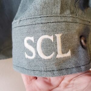 Like new condition Tyndale mens fire resistant button down work shirt. Weathered green. Right cuff has monogrammed initials. Mens size L