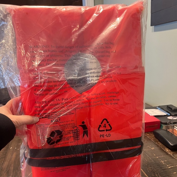 Seachoice Type II Personal Flotation Device (PFD) life vest. Bright orange polyester shell with PE foam filling for enhanced visibility and buoyancy.