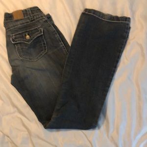 These are really awesome jeans except for two small flaws. The one at the hemline is non noticeable and the threads can be trimmed. Cute buttons, too!