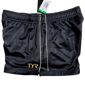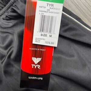 New with Tags, TYR Women's Warm Up Shorts in Black with Gold Accent, Size Medium, Retails $34.