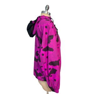 This vintage ski jacket from Tyrolia by Head is a striking relic of the 80s. The bold pink and black abstract pattern captures the era's daring fashion sense. The nylon fabric and practical hood design make it both functional and stylish, a testament to the adventurous spirit of vintage ski wear.