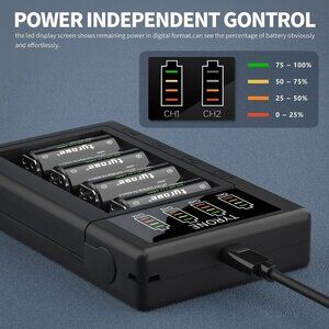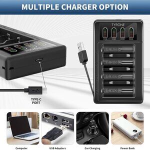 - Complete Charging Set: Includes four 123 lithium batteries and a Tyrone 4-port smart charger that supports 123 and 16340 lithium batteries with four charging slots.