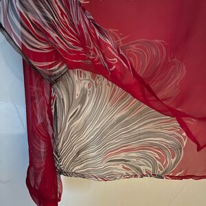Tysa 100% silk long sleeve Red blouse, 0, XS flutter cuff, deep V open neckline