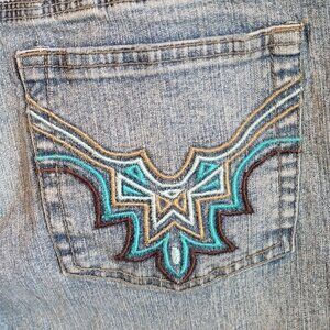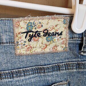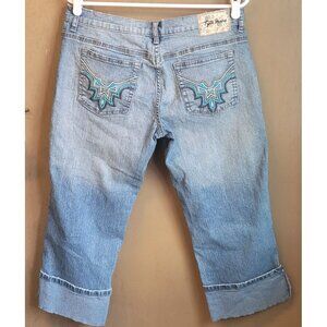 Tyte Jeans Capri length distressed embroidered pockets jeans.